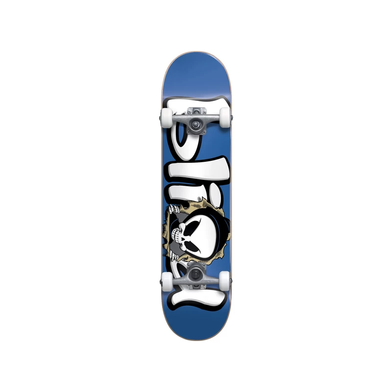 Skateboard complet BLIND Bust Out Reaper Soft Wheel Blue en 7.625″, un skate polyvalent au roues souples idĂ©al pour les jeunes qui veulent dĂ©buter en street, bowl ou park.