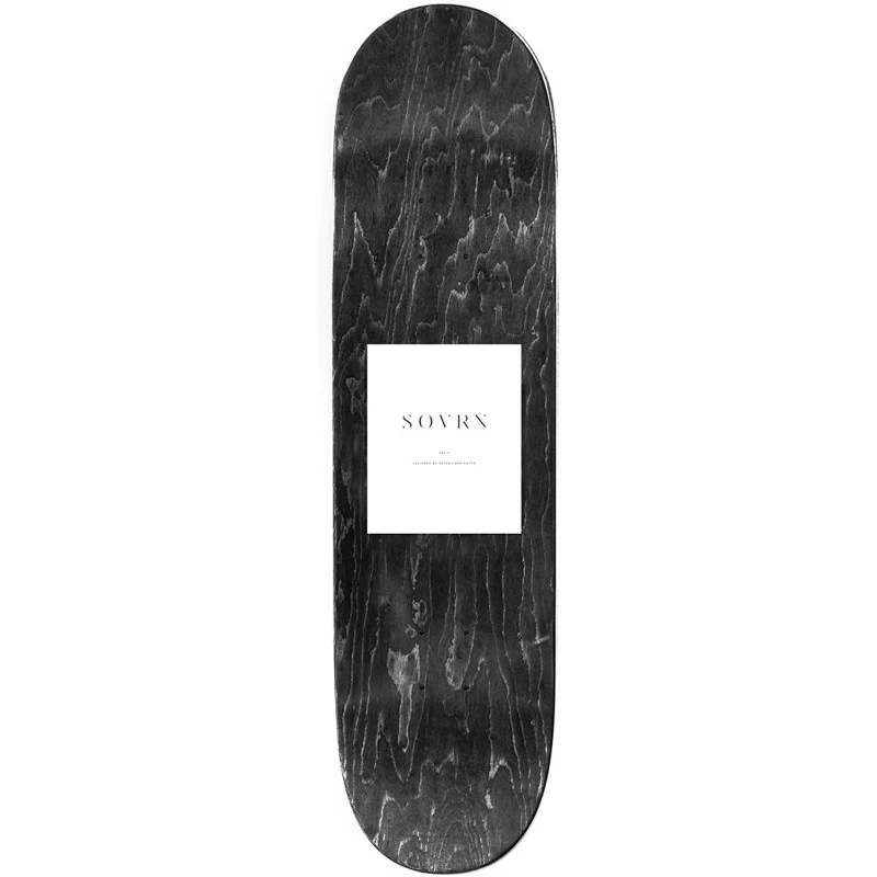 Planche de skate SOVRN Skateboard Felis en 8.5″, au design original avec un dessin de félin sur fond blanc.