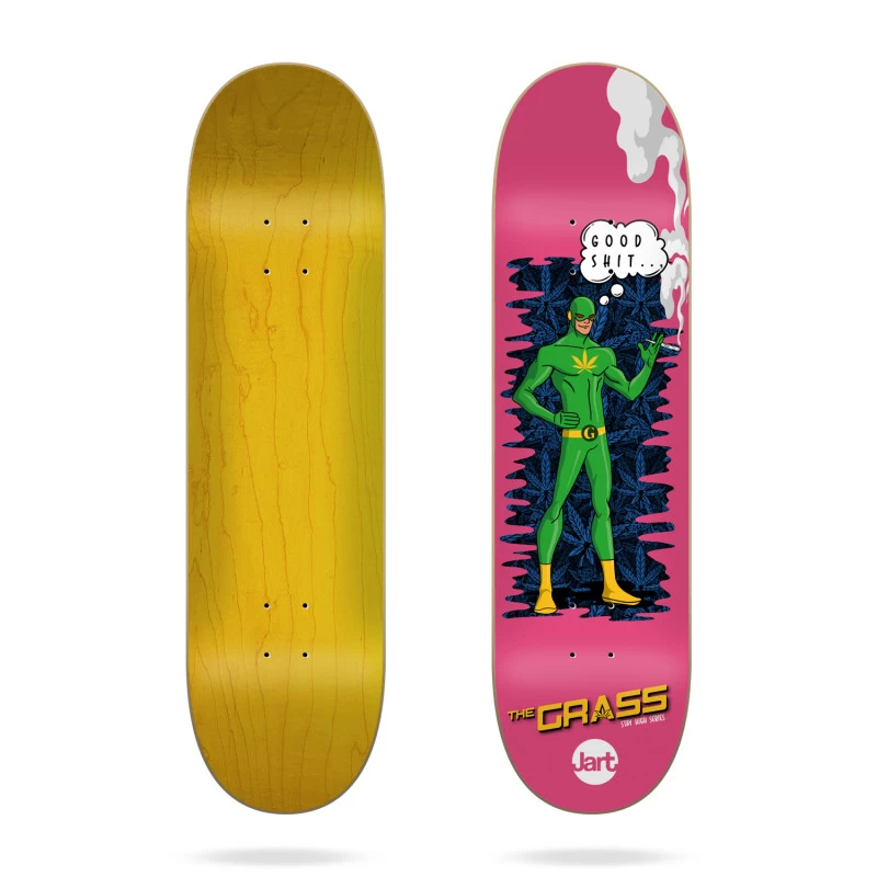 Planche de skateboard JART The Grass en 8.25″, une planche au design drôle et original caricaturant le célèbre super-héros de DC Comics Flash.