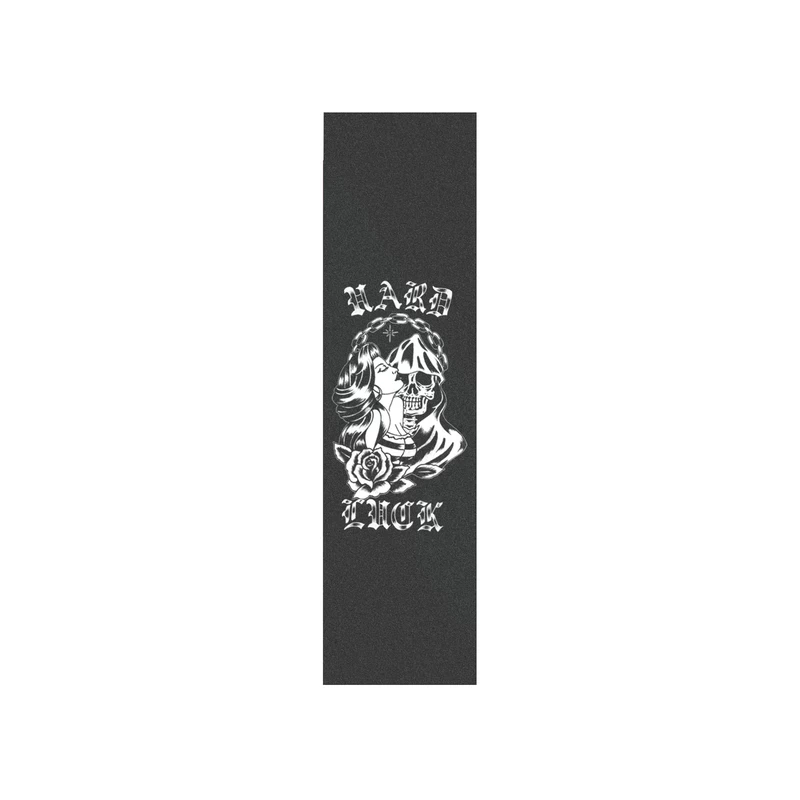 Grip de skateboard HARD LUCK pour plateau de Skate, modèle Novios en 9 x 33 pouces, au graphisme hispanique nous rappelant « Los dias de los muertos »