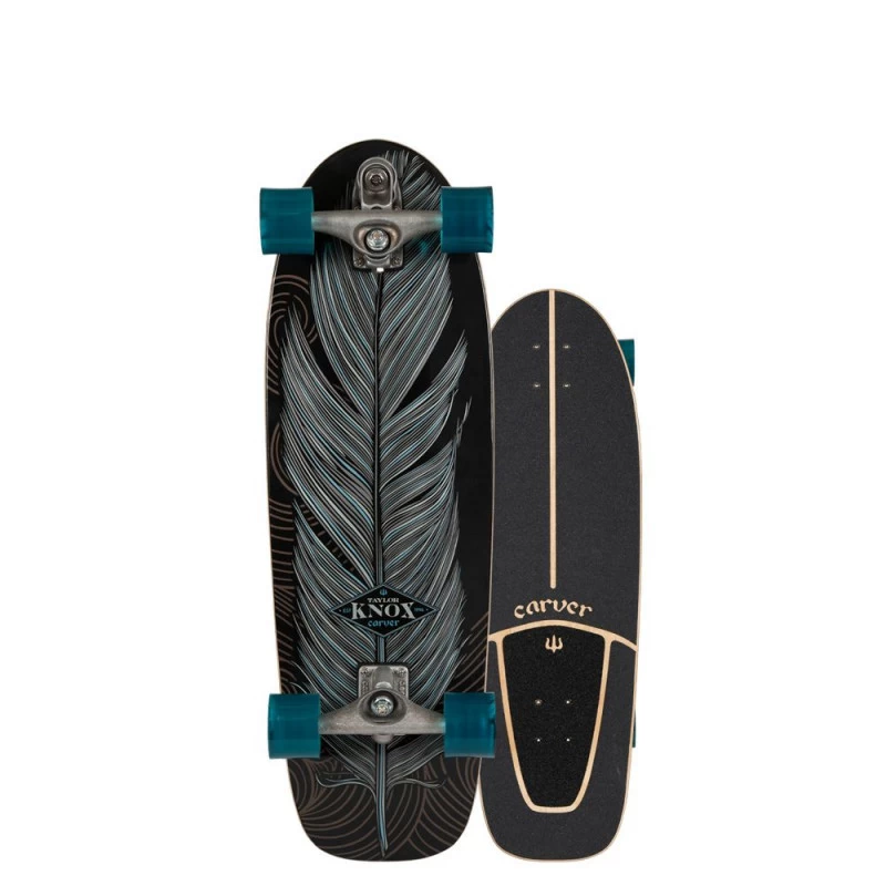Monté avec des trucks Carver C7, les trucks spécifiques Carver skateboards, qui permettent de retrouver la sensation du surf des mers