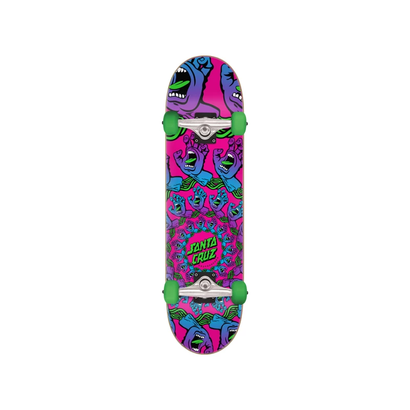 Skate complet Mandala Hand Mini de chez SANTA CRUZ Skateboard en 7.75″, idéal pour les jeunes qui veulent débuter avec du matériel de qualité.
