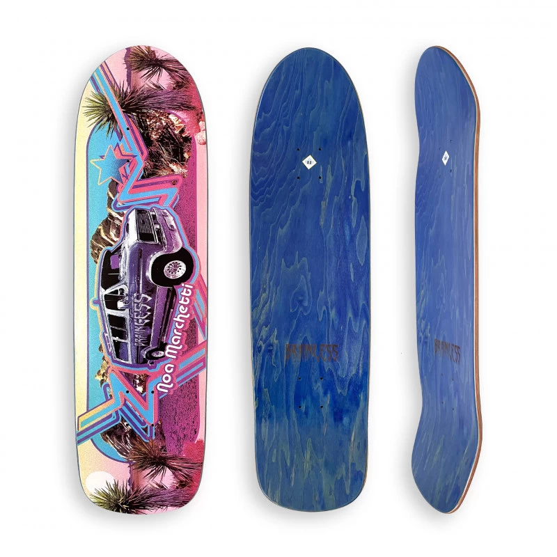 Planche de skateboard BRAINLESS King of the Road Noa Marchetti en 9″, une planche au shape spécial, fait 100% en érable canadien hardrock 7 plis avec colle époxy simple.