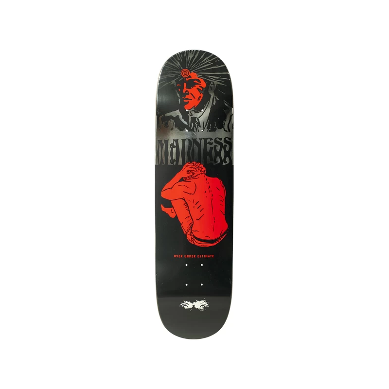 Planche de skateboard MINDNESS Break Down R7 Silver en 8.375″, une planche au graphisme rouge et noir à la profonde signification axée sur la dépression.