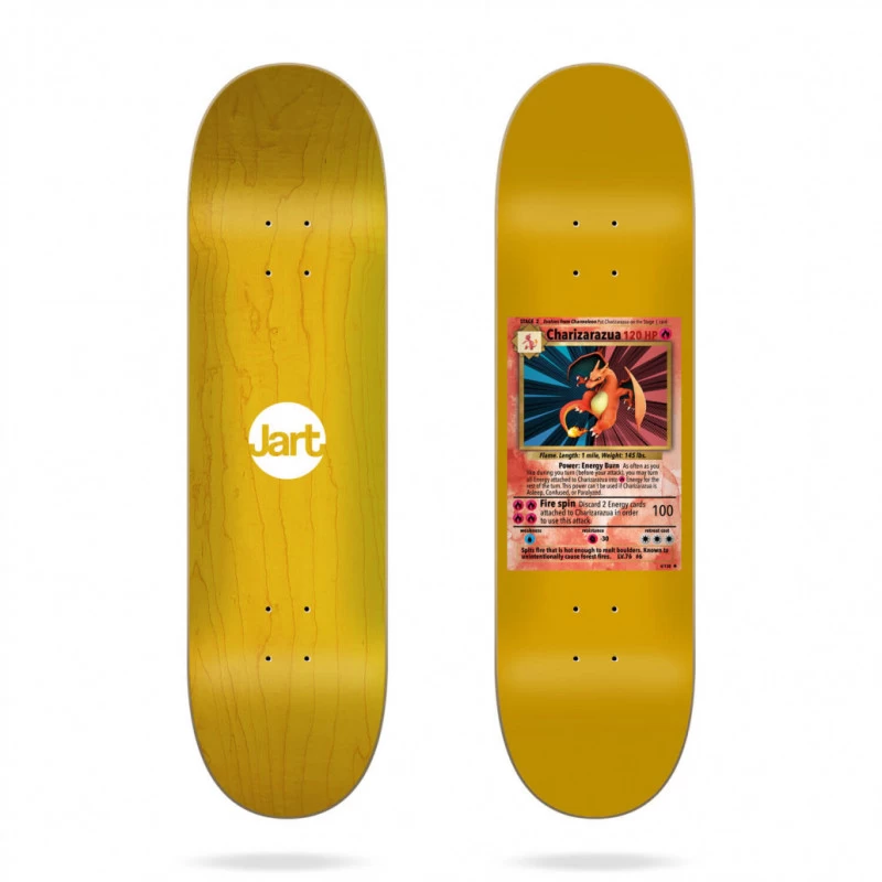 Planche de skateboard JART Charizarazua Carlos Zarazua en 7.75″, pro-model du skateur Carlos Zarazua au design reprenant les célèbres cartes à jouer Pokémon.