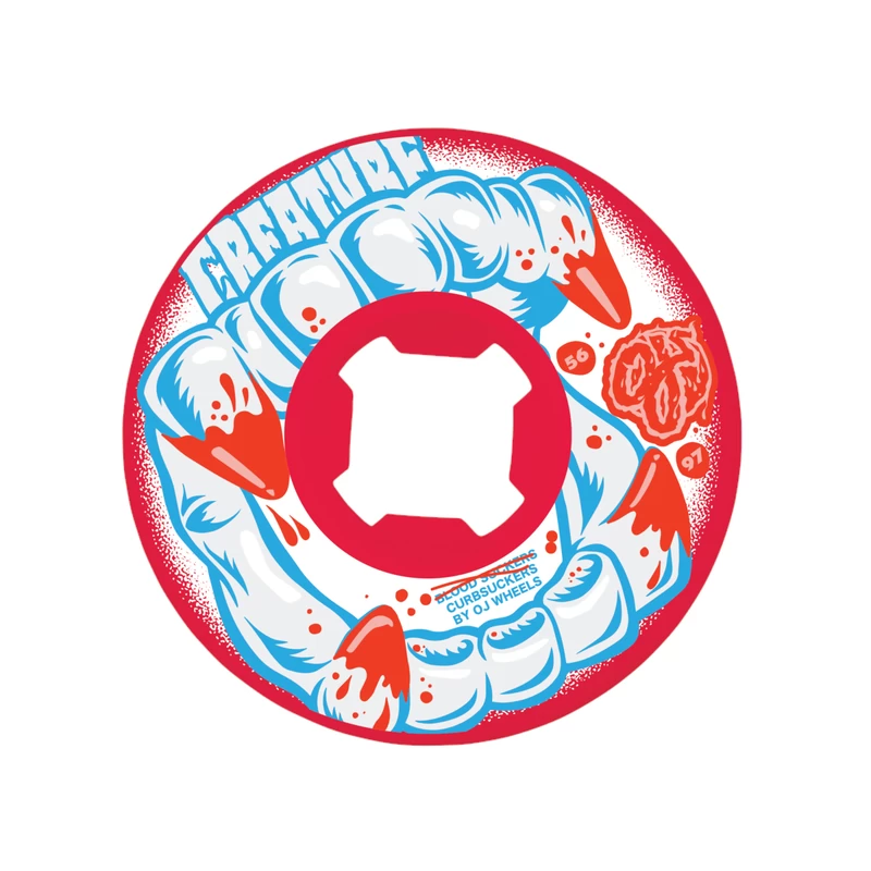 Roues de skateboard OJ WHEELS Curbsuckers Bloodsuckers en 56mm et 97A réalisées en collaboration avec la marque de skateboard CREATURE !