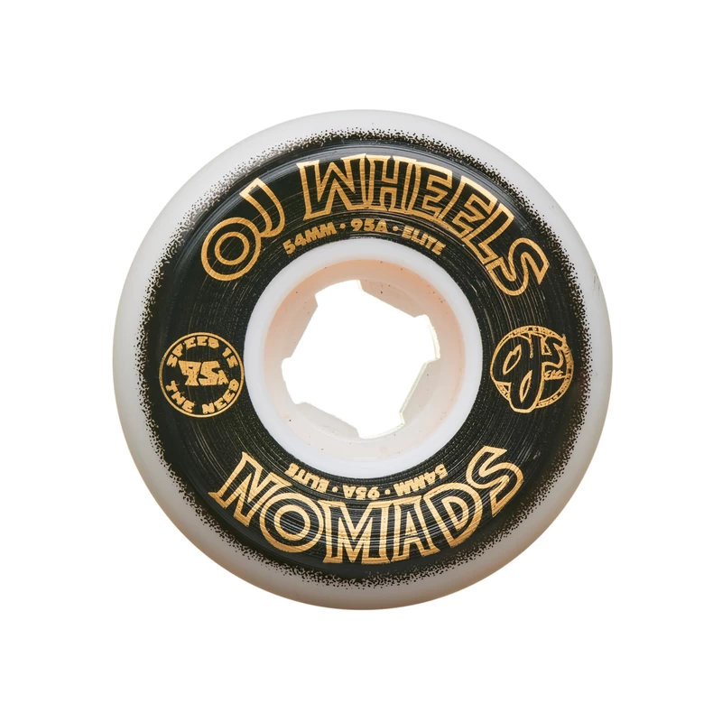 Roues de skateboard OJ WHEELS Elite Nomads en 54mm et 95A, roues plus souple et assez larges idéales pour le street ou le bowl.