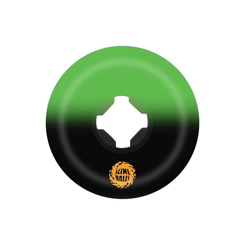 Roues de skateboard SLIME BALLS Greeting Green Black en 56mm et 97A, une roues bi-colore larges et polyvalentes pour le street ou le bowl.