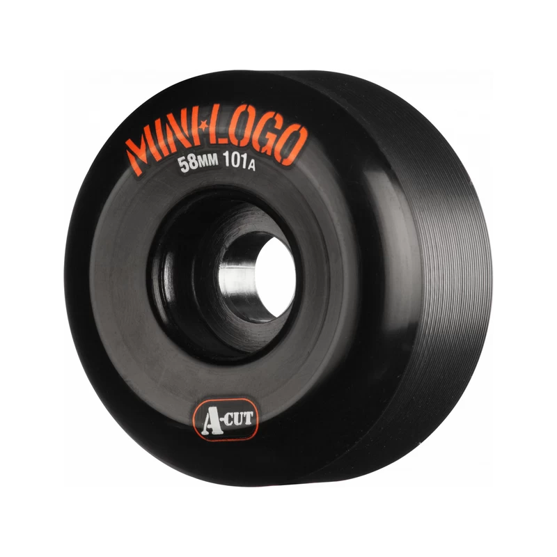 Roues de skateboard noir assez large et rigide, adapté pour le bowl et pour passer partout en street.