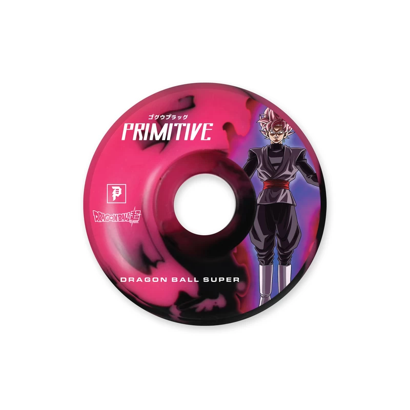 Jeu de 4 Roues de skateboard PRIMITIVE, de la célèbre collection Primitive x Dragon Ball, avec cette fois ci le modèle Goku Rose Black en 53mm et 99A