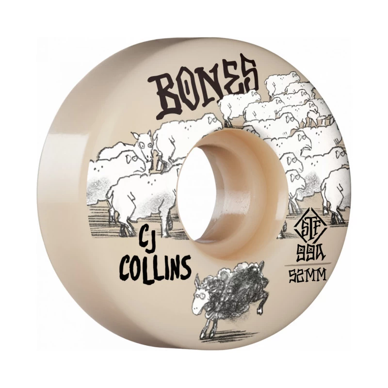 Roues de skateboard Collins Black Sheep de la marque BONES Wheels. Roues de haute qualité en 52mm et 99A, pro-model du skateur américain CJ Collins.