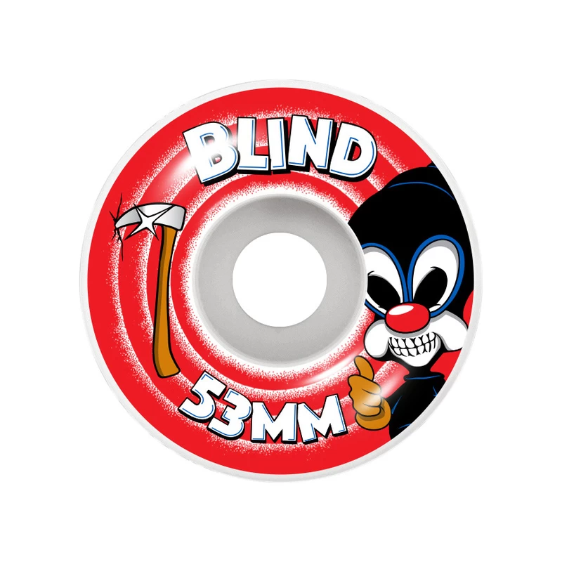 Roues de skateboard BLIND Reaper Impersonator Red en 53mm 99A, au graphisme inspiré par le logo des Looney Tunes.