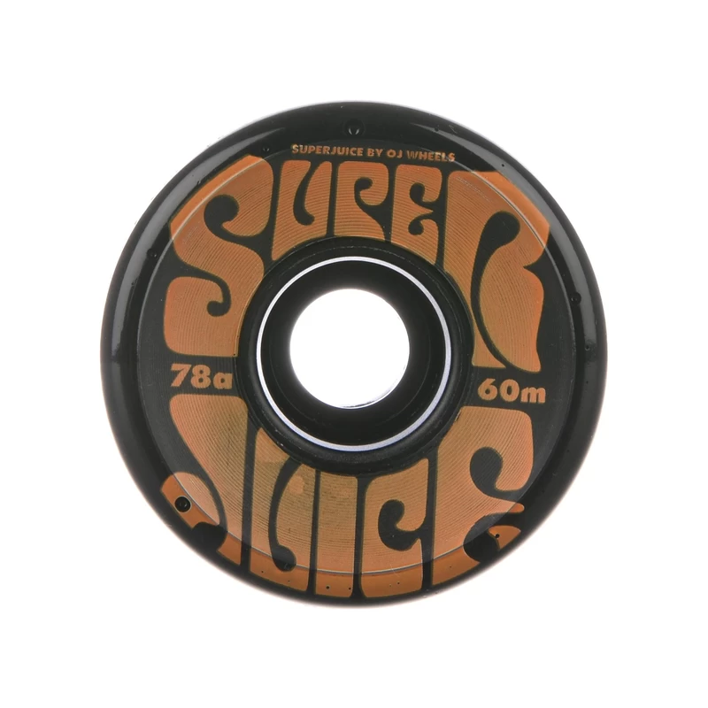 Roues de skateboard OJ WHEELS Super Juice Noir en 60mm et 78A, roues larges et molles idéales pour la balade et le cruising. Vendues par 4
