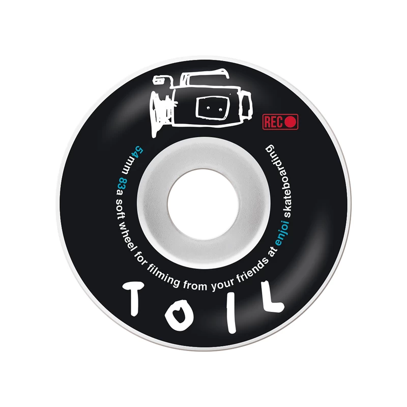 Roues de skateboard ENJOI Toils Black en 54mm et 83A, des roues molles idéales pour cruiser ou bien pour monter sur une board de filming.