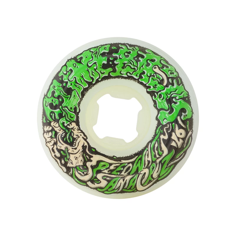 Roues de skateboard SLIME BALLS Vomit II White Green en 54mm et 97A, des roues polyvalentes idéales pour le street, la park ou même le bowl.