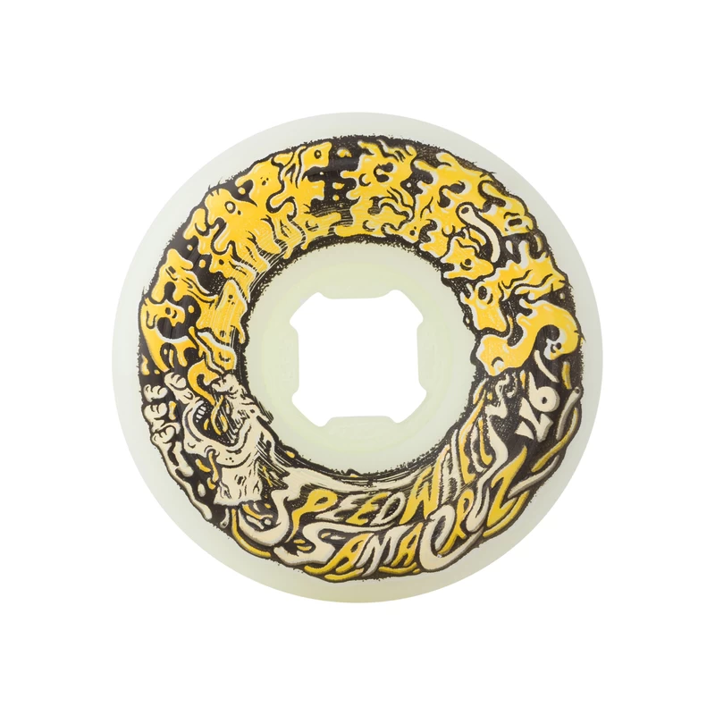 Roues de skateboard SLIME BALLS Vomit II White Yellow en 56mm et 97A, des roues assez larges parfaites pour le street, le bowl ou la rampe.