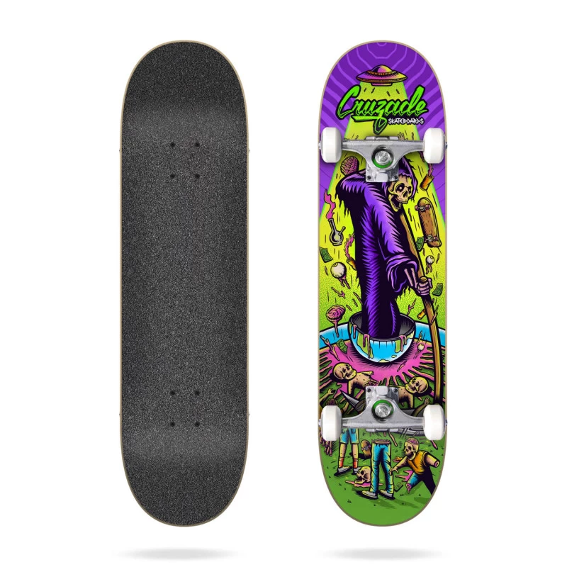 Skate complet CRUZADE Skateboard Deathskull en 8.25″, idéal pour ceux qui veulent progresser et apprendre des trick avec du matériel de bonne qualité