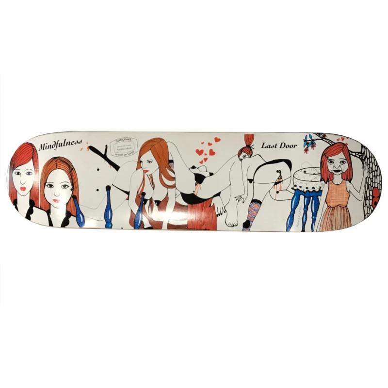 Planche de skateboard MINDFULNESS en 8.125 pouce, issu de la collaboration entre la marque de skateboard Matse et l’artiste plasticienne française « Aurélie Dubois ».