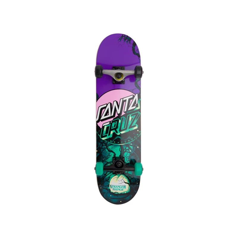 Skateboard complet SANTA CRUZ x Stranger Things Other Dot en 7.75″, issu de la collaboration entre la marque de skateboards Santa Cruz et la célèbre série Netflix Stranger Things.
